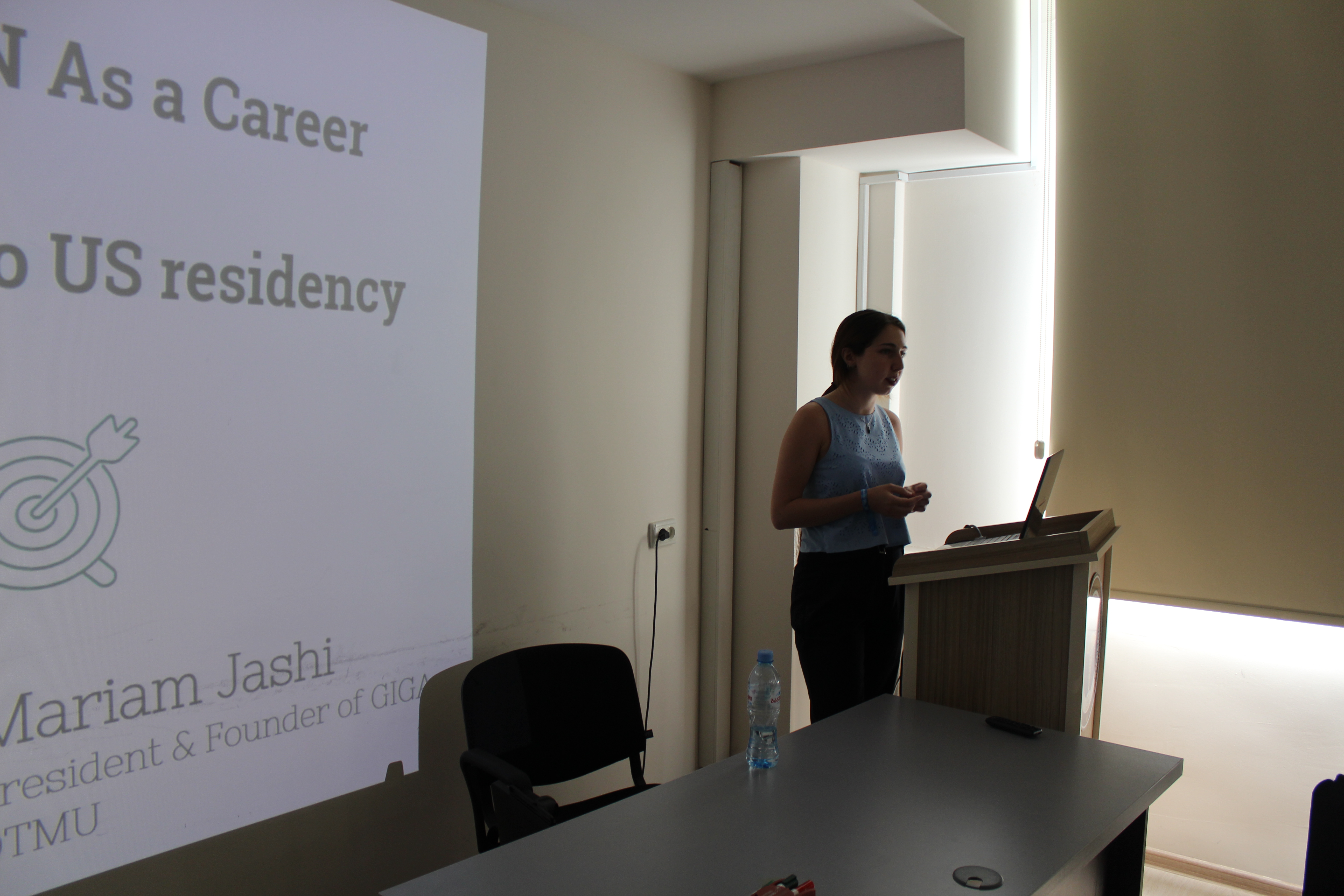 22 ივნისს, დავით ტვილდიანის სამედიცინო უნივერსიტეტში, აიეტის გინეკოლოგიის ინტერესის ჯგუფის (GIGA) პირველი ვორქშოფი ჩატარდა. ვორქშოფი შედგებოდა ორი, თეორიული და პრაქტიკული ნაწილისგან. თეორიულ ნაწილში, განხილულ იქნა მეან/გინეკოლოგია, როგორც პროფესია, მისი პოზიტიური და ნეგატიური ასპექტები და მსმენელს მიეწოდა ინფორმაცია, ამერიკის შეერთებულ შტატებში, აღნიშნული პროფესიის დასაუფლებლად გასავლელი აუცილებელი ნაბიჯების შესახებ. პრაქტიკულ ნაწილში კი, მონაწილები დაეუფლნენ გინეკოლოგიური გასინჯვისთვის აუცილებელ უნარ-ჩვევებს. ასევე, საშუალება მიეცათ, მულაჟებზე საკუთარი ხელით განეხორციელებინათ შემდეგი მანიპულაციები: ბიმანუალური გასინჯვა, სარკის ჩადგმა, პაპ ტესტისა და სხვადასხვა ტიპის ნაცხის აღება. ლექციას უძღვებოდა დავით ტვილდიანის უნივერსიტეტის მეექვსე კურსის სტუდენტი და გინეკოლოგიის ინტერესის ჯგუფის დამფუძნებელი, მარიამ ჯაში. პრაქტიკულ ნაწილში კი, დამსწრე სტუდენტებისგან შექმნილ ორ ჯგუფს ზედამხედველობდნენ მარიამ ჯაში, დავით გახოკიძე, გვანცა ქოჩიაშვილი, ნინუცა კაკაბაძე, და ანა მეტრეველი (გინეკოლოგიის ინტერესის ჯგუფის საორგანიზაციო საბჭო, ვორქშოფის ტუტორები და აქტიური წევრები, უკლებლივ არიან დავით ტვილდიანის სამედიცინო უნივერსიტეტის სტუდენტები).