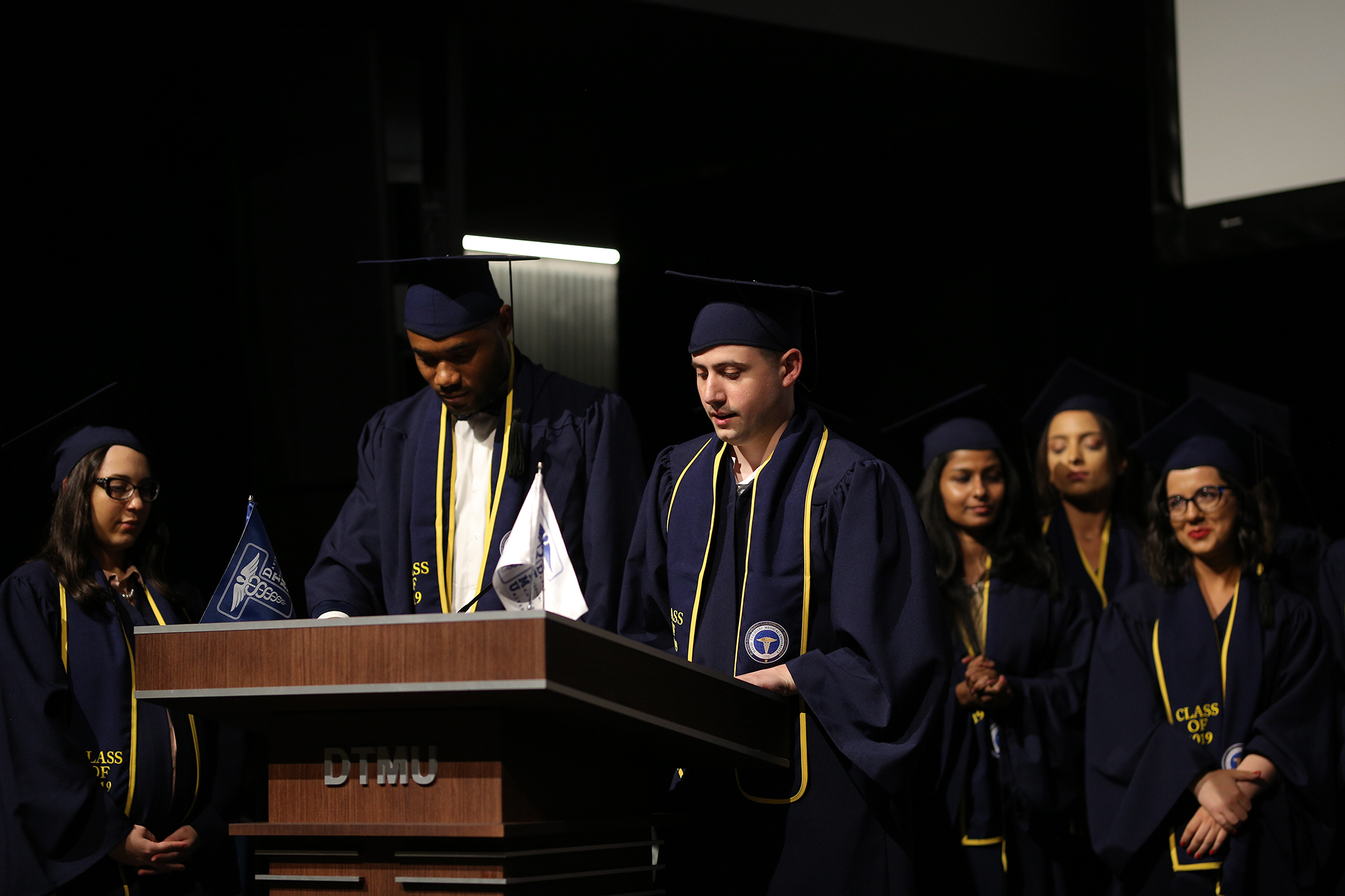 საღამოს უძღვებოდნენ ცნობილი პიანისტი დავით ალადაშვილი და ცნობილი საოპერო მომღერალი ნატალია ქუთათელაძე. კურსდამთავრებულებს საქართველოს პრეზიდენტმა ქლბ-მა სალომე ზურაბიშვილმა, უნივერსიტეტის დამფუძნებელმა ბნ-მა დიმიტრი ტვილდიანმა, რექტორმა ბნ-მა ლევან ტვილდიანმა და დეკანმა ქლბ. ნინო ბრეგვაძე-თაბაგარმა მიმართეს. ასევე სიტყვით გამოვიდნენ და დამსწრე საზოგადოებას თავისი გამოცდილება გაუზიარეს დტსუ-ს 2002 წლის გამოშვების სტუდენტმა ვასილ ცისკარიშვილმა და 2019 წლის დამამთავრებელი კურსის სტუდენტმა ლაშა შერაზადიშვილმა.