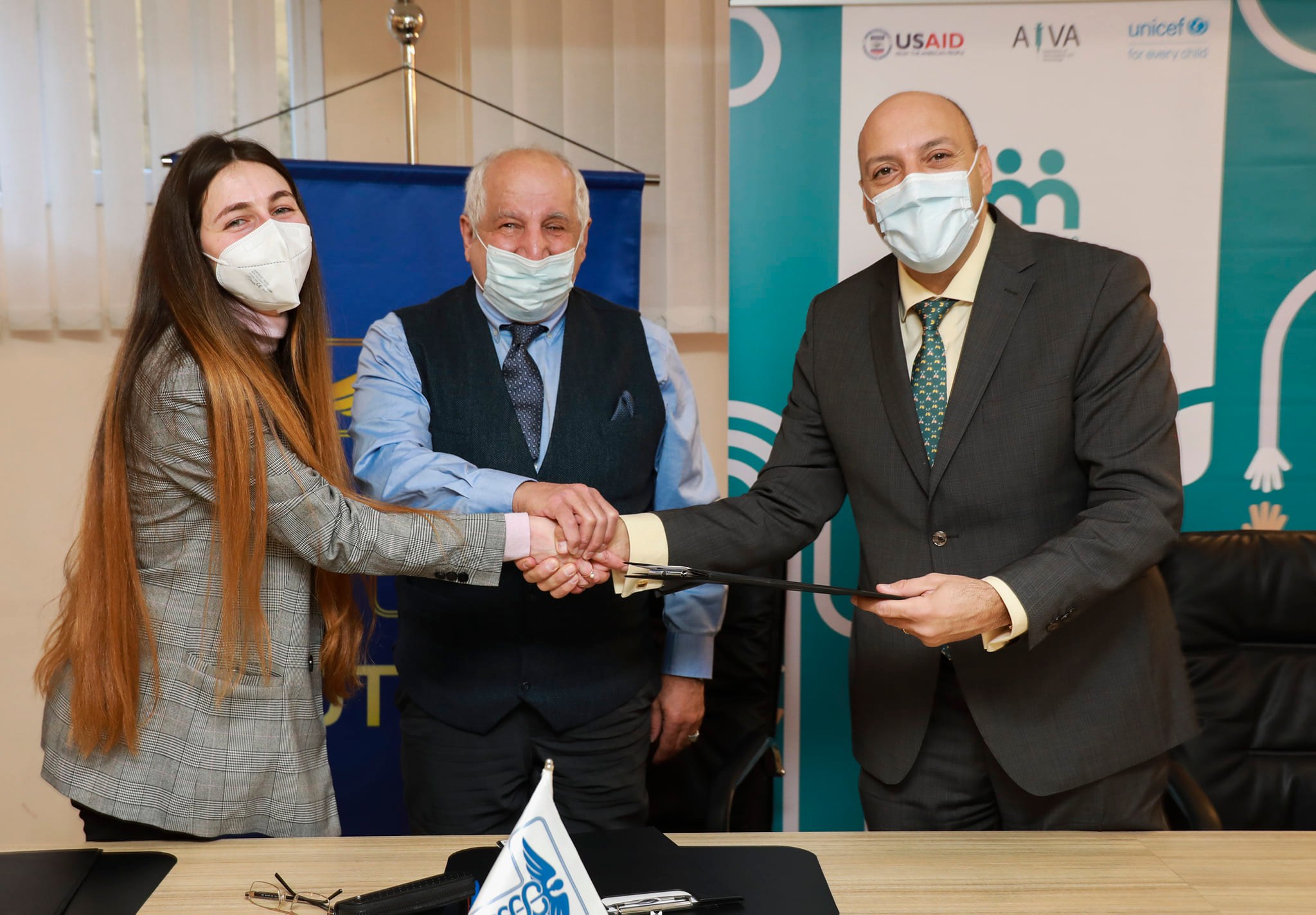 ურთიერთთანამშრომლობის მემორანდუმს ხელი მოაწერეს გაეროს ბავშვთა ფონდის წარმომადგენელმა საქართველოში, ღასან ხალილმა, დავით ტვილდიანის უნივერსიტეტის პრორექტორმა, სერგო თაბაგარმა და AIVA-ს წარმომადგენელმა, მარიამ ჯაშმა.
